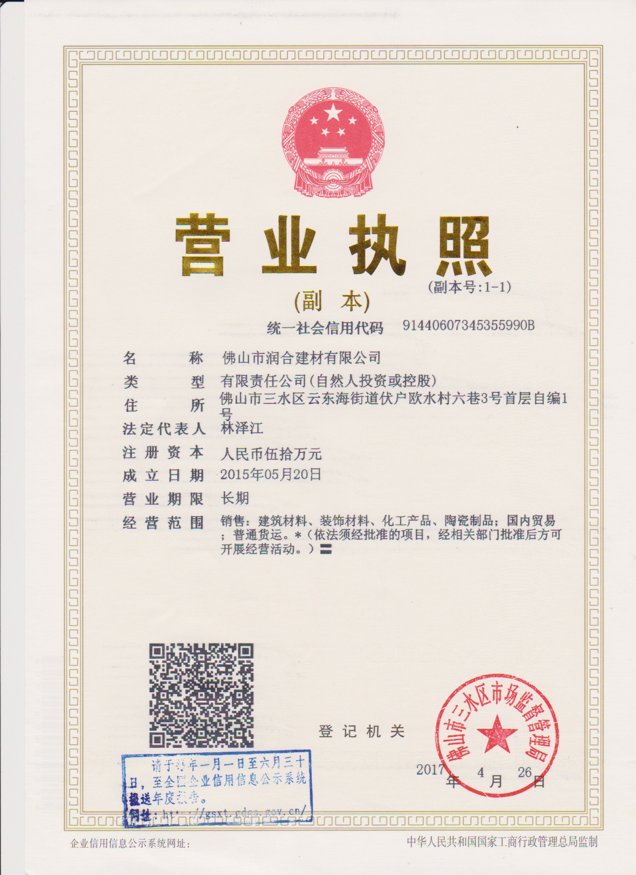 佛山市潤合建材有限公司 佛山市潤合建材有限公司成立于2015年5月,坐落于因北江、西江與綏江匯流而得名的廣東三水。創始人林澤江先生是一位典型的潮汕生意人,有著潮汕人不服輸不怕苦、 愛拼才會贏的創業精神。90年代父母已來到三水做起水泥生意,自小在充滿拼搏、團 結的氛圍中成長,學會了許多做生意的理念,懂得了如何誠信做人、踏實做事,企業 發展至今市場競爭愈演愈烈我們面臨太多的同行追趕和挑戰所以公司必須全面轉型。 查看更多 >>